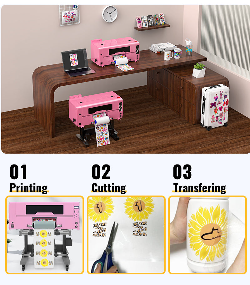 Haolic Pink UV DTF Printer With Dual XP600 Heads & Laminator 2 in 1