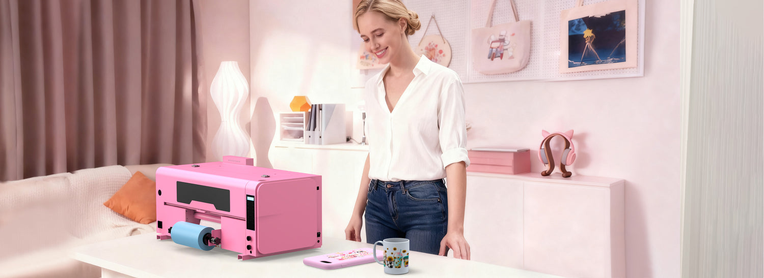 Haolic Pink UV DTF Printer With Dual XP600 Heads & Laminator 2 in 1