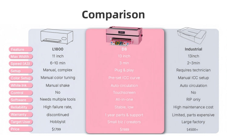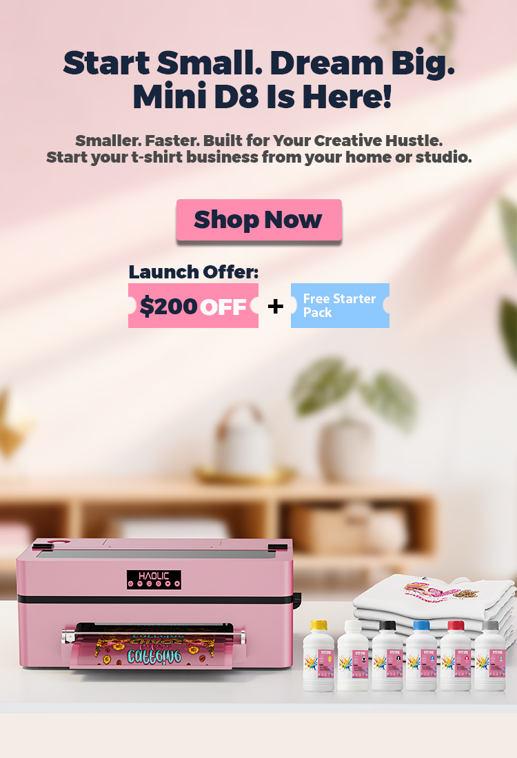 The Haolic Mini D8 is designed for small businesses, home studios, and creators who want professional-quality printing without the big machines. Compact yet powerful, it makes launching your brand easier than ever.