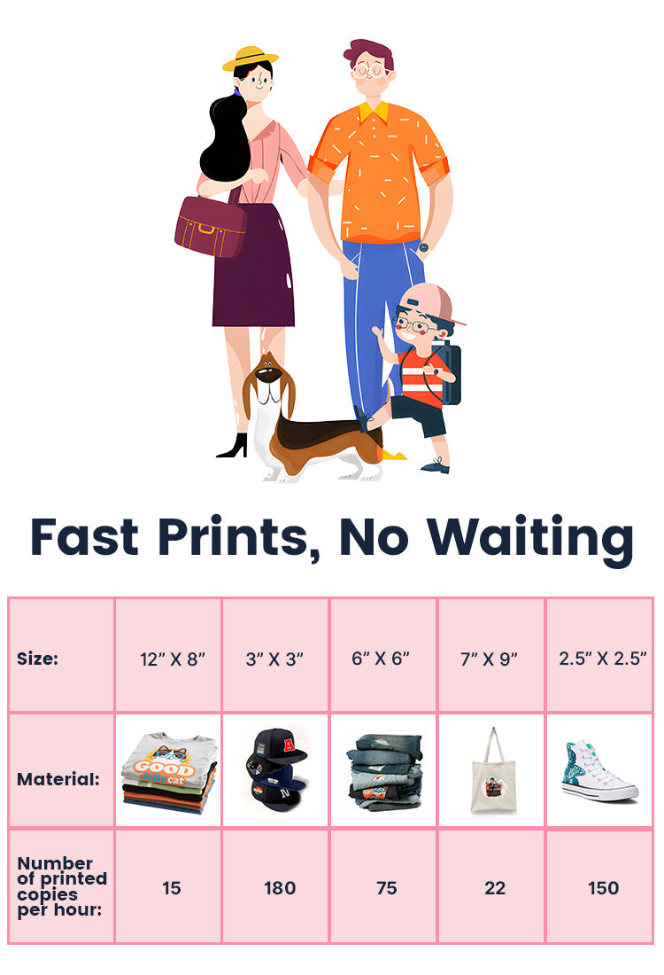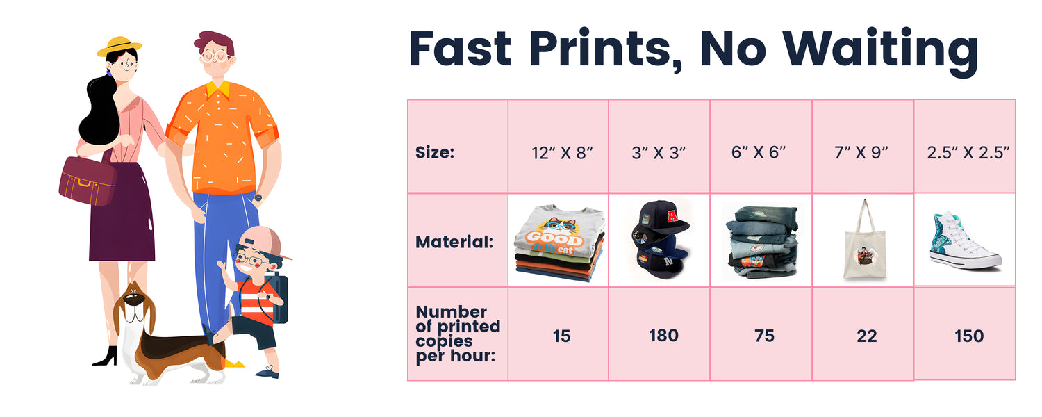 Fast Printing Speed – Up to 16 ft²/hour for efficient small batch production.