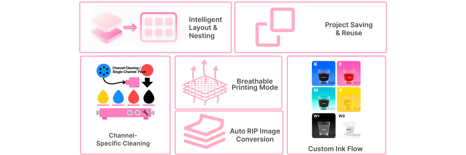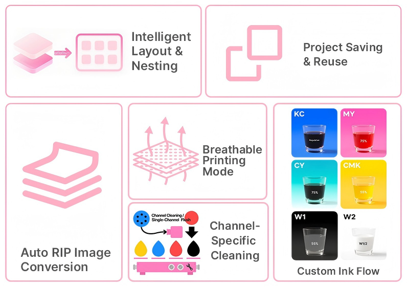 All-in-One Software – Built-in Auto RIP for easy setup, no extra software needed.
