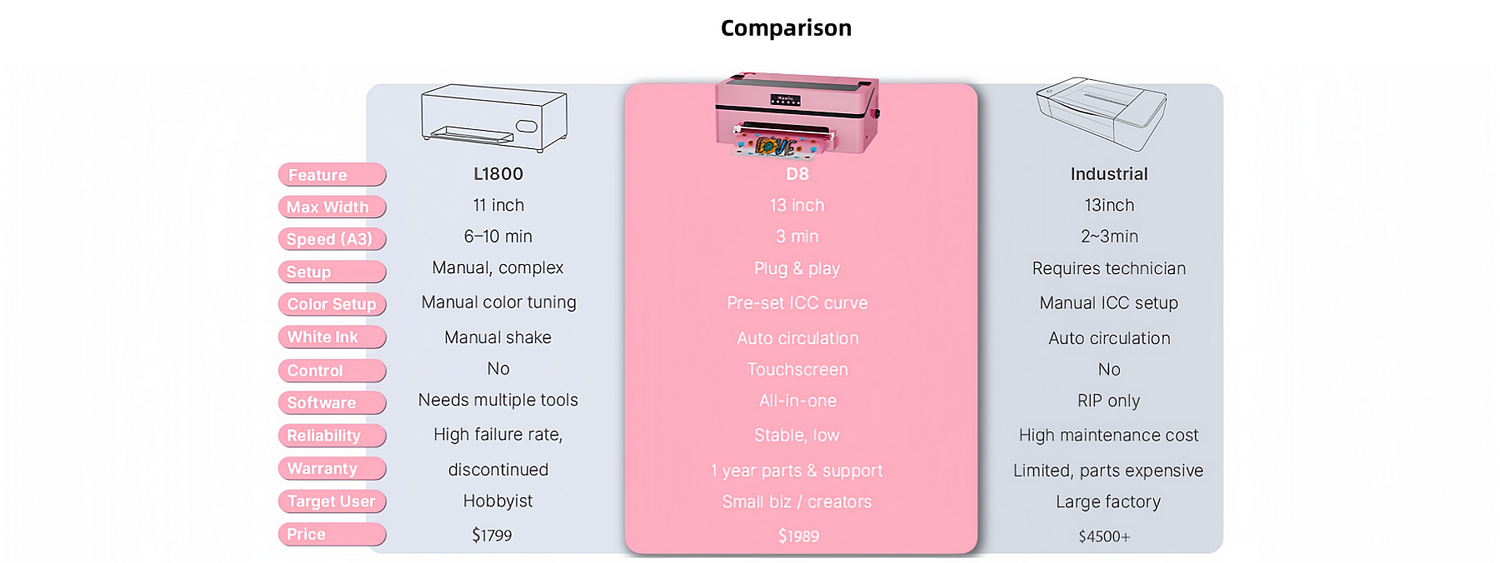 Haolic Mini D8 DTF Printer 13" | Compact Direct-to-Film Printer for Small Business & Home Use